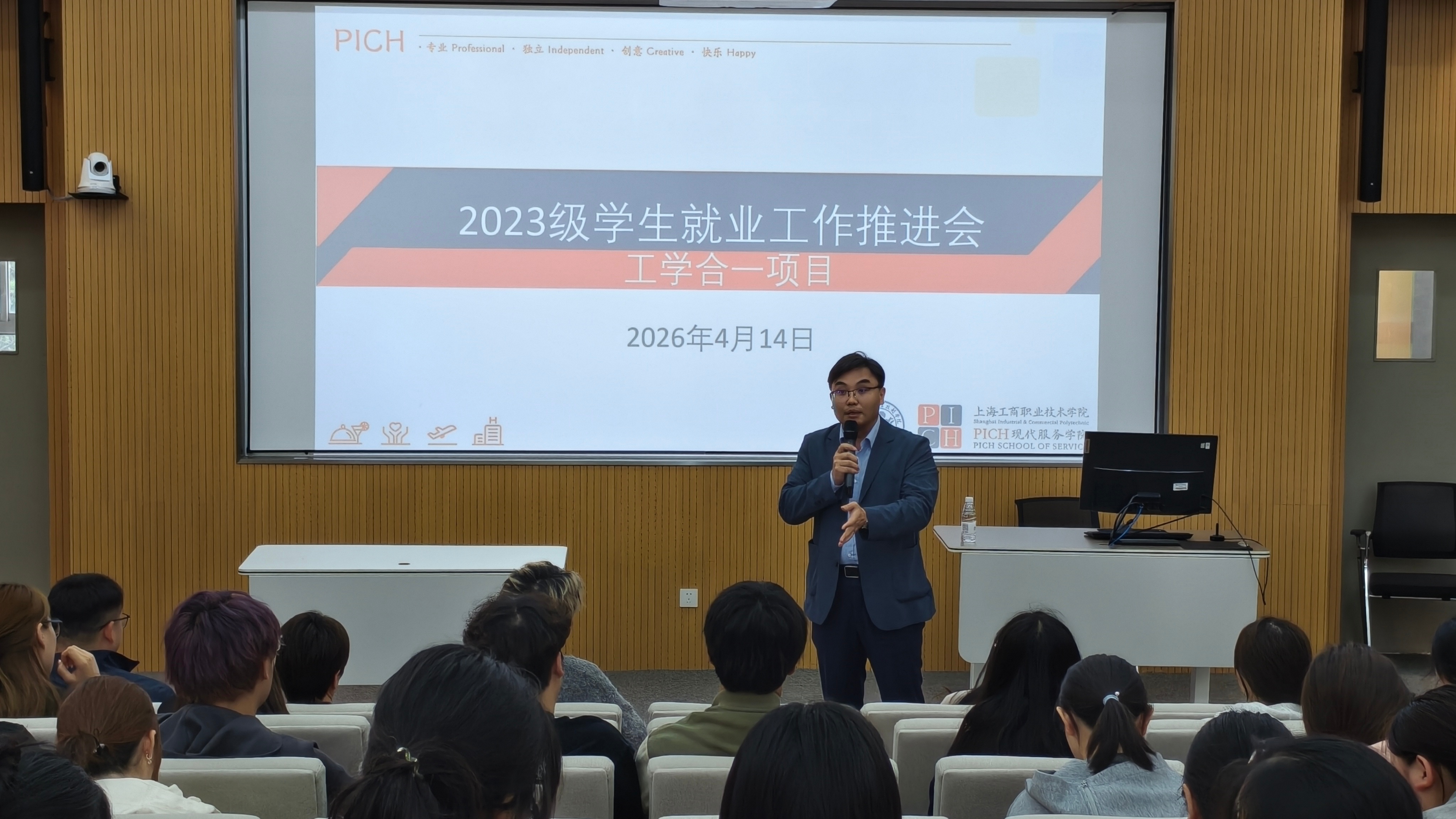 为助力护理专业学子破解就业竞争与学历提升双重难题,搭建高质量职业发展通道,2026年4月14日,上海工商职业技术学院 PICH 现代服务学院于青浦校区4210 教室顺利举办上海交大教育集团护理 “工学合一” 项目专场宣讲会。本次宣讲会以项目深度解读、优秀学子就业分享、院领导答疑、现场互动交流四大核心环节为主线,为在场学子清晰擘画了一条可靠、高效、前景可期的护理职业发展路径。